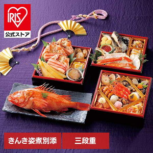 北海道産の海鮮を中心としたおせちです。おせちとしては珍しい具材も取り入れた他にはない三段重です。別添のきんき姿煮も大変好評いただいてます。※リニューアルに伴い、パッケージ・内容等予告なく変更する場合がございます。予め