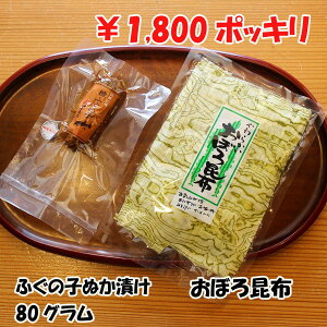 商品説明名称 【メール便対応送料無料】ふぐの子糠漬け 80グラム×1パック+おぼろ昆布 30グラム×1パック原材料名【ぬか漬け】ごまふぐ卵巣(石川県産)、米糠、糀、食塩、魚汁【昆布】昆布(北海道産)、醸造酢(一部ゼラチンを含む)賞味