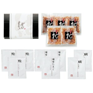 かつおの旨みを凝縮した鰹節やおめでたい鯛の身が入った鯛茶漬けなど、ご飯の美味しさを引き立てるたくさんの縁起物をバランスよく揃えた定番ギフトです。 商品内容:かつお節5袋(3g)、鯛茶漬け2袋(6g)、かつおふりかけ3袋(3.5g)、