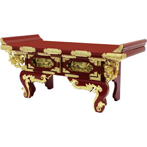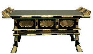 お仏壇の前に置く台(机)です。花立てや香炉、ローソク立て、線香立て、おりんなどを置いてお使い下さい。本来はお経の本を置く台である事から「経机」と呼ばれています。経机を使うと、座った状態でおまいりができ、線香やロ