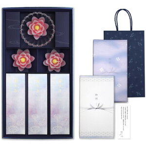 ■ 使用シーン ・全宗派および全仏事でお使いいただけます。 ・四十九日/一周忌/三回忌などの法要 ・葬儀/お盆/初盆/お彼岸のお供え ・年末のご挨拶や、喪中見舞いの贈り物にも最適 ■ 商品構成 ・花風3種×各1箱 ・ロウソク(小箱入り...