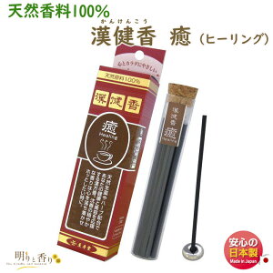 品名 漢健香 箱入 癒(いやし) お線香寸法 約100mm 燃焼時間 約20分 総重量(Gross Weight) 約65g 内容量(Net Weight) スティック30本、香立付 パッケージ 紙箱...