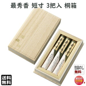 品名 短寸3把桐箱入小型進物 伝統の薫り 最秀香 短寸3把入 桐箱 お線香寸法 約138mm 燃焼時間 約35分 内容量(Net Weight) 3把入 総重量(Gross Weight) 約258g...