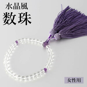 念珠 女性 葬儀 お葬式 数珠 紫 パープル 水晶 パワーストーン レディース クリスタル 正絹頭房 法事 仏壇 仏具 略式数珠 ブラックフォーマル 喪服