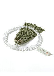 京都、法珠庵の吉村珠道作のこだわり数珠でございます。山梨甲府市の職人にて加工された艶が違う最高級の水晶が使用されています。中糸はシックなグレー色を使用し、細い銀糸がと共に編みこまれています。使用する素材に全体的なパー