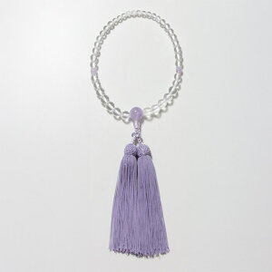 くみひも梵天房(正絹) 藤色 箱 桐箱入り 宗派 天台宗 美しい本水晶を藤色の房で仕立てた、天台宗用の正式な女性用のお念珠です。 水晶は悪いことを浄...