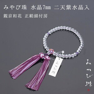 ←クリックすると写真が拡大します。 主玉 本水晶(切子) 6mm 親玉 本水晶(切子) 10mm 副玉 本水晶(切子) 3mm ツユ 本水晶(切子) 高さ8mm 房 くみひも梵天房(正絹) 紫色 箱 桐箱入り 宗派 浄土宗 本...