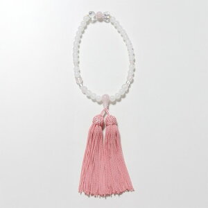 ガラス レーヨン 約34g 日本 交互にホワイト ピンクの玉を配置した、 センスある高品質な日本製 女性用念珠。 略式仕様ですので、宗派を問わず使用可能。 フェミ