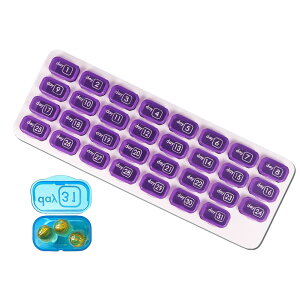 ピルケース 1ヶ月 31格 薬ケース 1ヶ月 お薬カレンダー サプリケース 薬入れ 防湿小型 薬 収納 錠剤 ケース 薬 飲み忘れ防止 高齢者用 薬のみ忘れ防止ポーチ 旅行用 - パープル