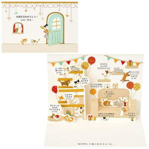 二つ折りポップアップカード グリーティングカード 部屋の中にネコたち サンリオ メッセージカード 誕生日祝い メール便可手紙 デザイン レターセット おしゃれ デザイン メッセージ贈ってももらっても楽しいグリーティン