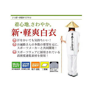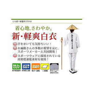 いっぽ一歩堂オリジナル白衣「新・軽爽白衣」と「軽爽ズボン」の上下セットです。 セット価格でお求めやすくなっております。 お遍路さんのご要望を反映した、今までに無い機能的白衣です。 いっぽ一歩堂のオリジナルモデルですので、
