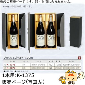 商品名 ブラック&ゴールド 720mL 1本 品番 K-1375 サイズ(mm) 316×90×88 ケース入数 50 重量 190g 適応瓶 約88φ×305Hまで 材質、仕様 材質:G段、仕様:本体...