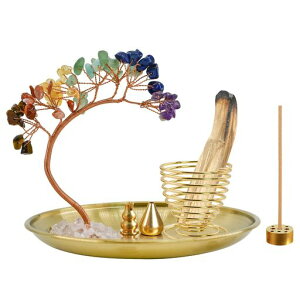 生き生き強い:線香立ては素敵なデザインがあって、金色皿にカラフルな生命の樹が差し込んであり、お皿に木が映って、生き生き強いに見えます。香炉の綺麗な外観で、ホームインテリアとしても適用で、お宅のリービング...