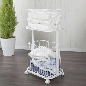 『 tosca( トスカ )ランドリーワゴン 2段 』はタテに配置された2つのバスケットで洗濯物を分類できる。