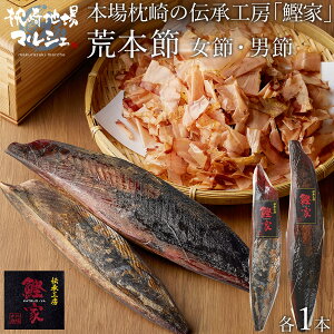 裸本真空節 女節・男節セット 鹿児島県枕崎市の老舗鰹節屋「的場水産」。職人によって一本一本丹精こめて作られるかつお節。製造過程で、焙乾(ばいかん)までの工程の鰹節を「荒本節」と言い、その表面を削ったものを「裸本節」と言いま
