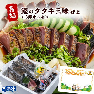 商品内容・藁焼きタタキ(背 約300g×1節、腹 約250g×2節)・すえひろ屋特製タタキのタレ(140ml×3本)・薬味せっと(1せっと)・おんちゃんの秘蔵柚子酢(140ml)原材料藁焼きタタキ:鰹(太平洋産) 薬味せっと:ネギ、ニ...
