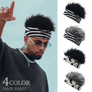 サイズ約45cm?66cm*伸縮性があります素材 ポリエステル*1つのお値段です【カラー】*ゼブラ柄 ブラック*ゼブラ柄 シルバー*パンダ柄 ブラック*パンダ柄 シルバーアメリカで大人気! ウケること間違いなしの「ヘア付きヘアバンド」の登