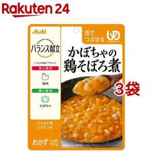 お店TOP>介護>介護食品>介護食>介護食>バランス献立 かぼちゃの鶏そぼろ煮 (100g*3コセット)【バランス献立 かぼちゃの鶏そぼろ煮の商品詳細】●バランス献立シリーズは赤・黄・緑の三色の食材をまんべんなく摂ることで...