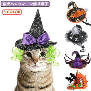 【送料無料】猫犬ハロウィーン飾り帽子、ペット用魔女の帽子緑かつら付き、かぼちゃ ハロウィン、クリスマス、パーティー用仮装衣装 犬 ハロウィン 猫 ハロウィン 衣装 帽子