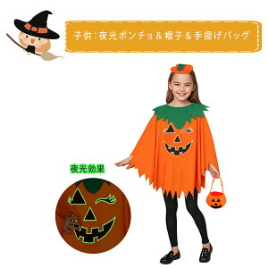 ブランド名 BlueRose fashion street 商品名 ハロウィン 衣装 大人 子供 親子 ペア コスプレ かぼちゃ ポンチョ 夜光効果 髪飾り 手提げバッグ 3点セット パンプキン マント ケープ...