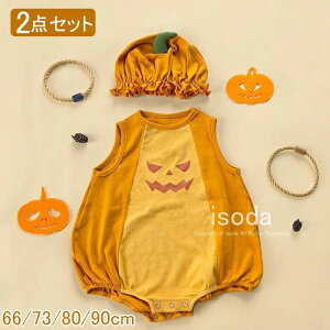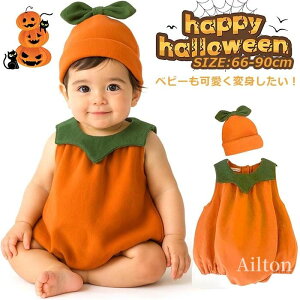 キーワード:\2-3点セット/ ベビー ハロウィン ロンパース かぼちゃ ベビー服 女の子 男の子 コスプレ ハロウィン衣装 キッズ 赤ちゃん 仮装 帽子付き カボチャ 衣装 子供服 おしゃれ 袖なし 新生児 コスチューム...