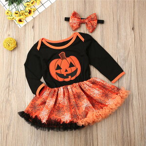 3点セット ワンピース 長袖 ハロウィン 赤ちゃん ベビー コスプレ 子供 衣装 仮装 可愛い ベビー パーティー ハロウィーン Halloween cosplay