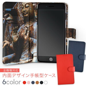 商品特徴・シームレスな内側デザイン、開いた時にデザインが楽しめます・素材には高品質の人工革を貼った、しっかり厚みのあるタイプ・内側にはスマホを装着するケースが付属・機種専用のカメラホール仕様でケースを装着したままの撮