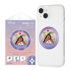 『モアナと伝説の海』のデザインが施されたリングステッカー。 貼り付けるだけでお使いのスマートフォンがマグネット式アクセサリー(MagSafe等)が使用可能になります。 簡単位置決めツール付き。 対応機種各種スマー