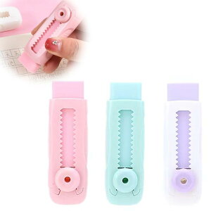 かわいいケース(本体)と消しゴム2本のセットです。 スティック型で持ちやすく、とても使いやすいデザイン。コンパクトで持ち運びに便利です。邪魔にならない♪ 使い心地かわいくて使うのが楽しくなります! ケース使用方法サイドのボタ