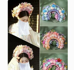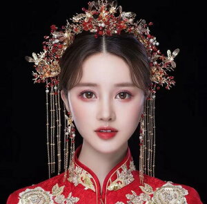 中華グッズ ヘアアクセサリー 髪飾りセット フリンジかんざし かんむり 王冠 ティアラチャイナ風コスプレ道具 舞台ステージ道具 中華コスチューム唐時代豪華な冠、皇后貴妃様への変身素材:合金 合成素材ご注意柔らかい素材