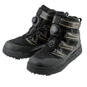 がまかつ ダブルグリップスパイクシューズ 防水 ブラックゴールド GM4539 (スパイクシューズ 釣り) ■素材:〈本体〉ポリエステルラバー合成皮革〈ソール〉ステンレスタングステン特殊ラバー ...