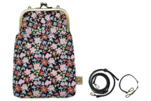 【送料無料】【LIBERTY】【リバティ】がま口2WAYスマホショルダー【ブラック】【黒】【花柄】【フラワー】【ポーチ】【ケース】【ポシェット】【斜め掛け】【小物入れ】【スマホ入れ】【収納】【お出かけ...