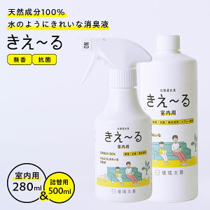 きえ〜るは、環境微生物群(乳酸菌等)を発酵・培養した「善玉活性水」から生まれたバイオ消臭液です。香りでごまかさずイヤな臭いだけを消臭、抗菌します。天然成分100%なのでお肌の弱い方やペットがいる環境でも使用可能。無色透明なので布ものに...