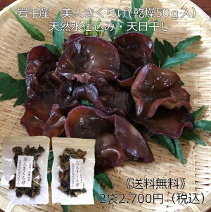 【原材料】きくらげ 【内容量】100g(50gx2袋) 原産国名:ベトナム 【保存方法】直射日光を避け、湿度の低いところで、低温で保存して下さい。 【食べ方】水で洗った後、水戻しして下さい。水戻し後、加熱調理してご利用下さい。