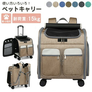 【出かけラクラク】キャリーリュックとして使い、ワンちゃん、猫ちゃんを連れていても両手が空いていますので他のお荷物を持つことも可能です。キャリーカートとしても使えるから、旅行やお出かけに最適です!さらに、オックスフォード生地を採用してい...