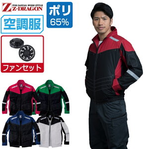 (ブランド:Z-DRAGON) 【品番】 74050 【商品説明】 届いてすぐにお使いいただけるおすすめセット商品! スプリットファスナーが際立つ空調服ブルゾン。 現場作業のみなら
