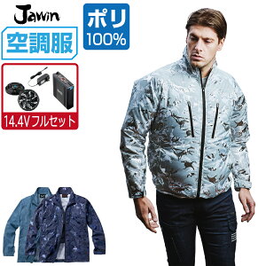自重堂 (ブランド:Jawin) 【品番】 54050 【商品説明】 届いてすぐにお使いいただけるおすすめセット商品! 存在感際立つ空調服ジャケット。 光沢感のあるカモフラ柄と...