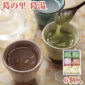 優しいとろみとほのかな甘さの「葛湯」4種の詰合せ。 商品名 葛湯6個入 原材料 【葛】砂糖(国内製造)、澱粉、葛澱粉、粉末水飴、オリゴ糖【抹茶】砂糖(国内製造)、澱粉、葛澱粉、粉末水飴、オリゴ糖、抹茶【おしるこ】砂糖(国内製
