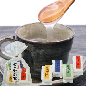 【商品詳細】自社製造の吉野葛を使用した手作りくず湯です。食欲不振の時やダイエットにもおすすめ。身体が芯からポカポカ白・しるこ・しょうが・抹茶味の4種の味のアソート20個入りプチギフトです。本品1袋を大き目の容器に入れ少量の