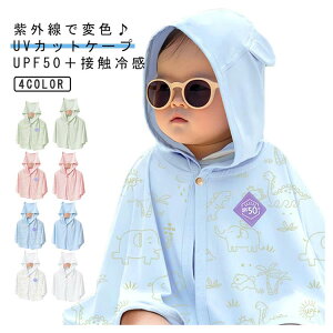 紫外線で変色♪UVカットケープUPF50+ 接触冷感【UVカット】ベビーの紫外線対策に!UVカット素材のくま耳つきポンチョ、さっと羽織るだけで紫外線対策ができる便利アイテム。UVcut率は99%以上で日焼け対策ばっちり。【安心安全・接...