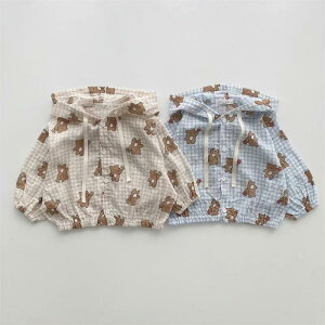 赤ちゃんの冷房対策とUV対策に!サッと羽織るだけでラクにUVカットのベビーマント。UVカット効果で日焼け対策に最適です。クマ耳付きの可愛いフード付きなので、頭部のUV対策に最適ケープ。接触冷感・吸水速乾素材で暑い日でも快適に着