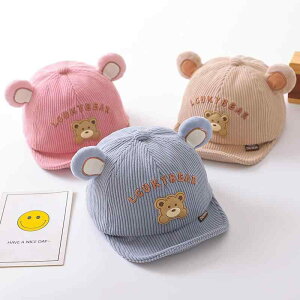 帽子 ベビー キッズ 秋冬 小熊 コーデュロイ 軟らかいつば 野球帽 日よけ 防風 かわいい ブルー ピンク ベージュ