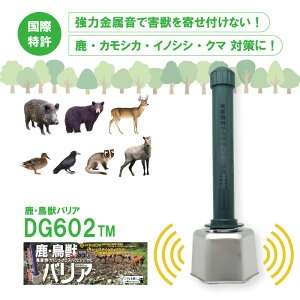 商品名 鹿・鳥獣バリア DG602TM 商品情報 シカ・カモシカ・イノシシ・ツキノワグマ・カラスなどの害獣対策「鹿・けもの警報器 DG602」がバージョンアップしてリニューアル! スイッチを入れるだけの簡単操作はそのままに、タイムサイクル機