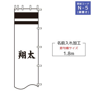 商品説明 家紋種類 ・N-5(横書き) 一人の名前を横書きでお入れします。 仕様 ・紋色・名前色 黒・赤・青・黄金色(別途料金) ・対応節句幟サイズ 1.8m 2.5m 4.5m〜3.8m 9.1m〜6.1m ※基本色以外のお色をご希...