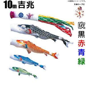 鯉のぼり 吉兆鯉 こいのぼり 庭園用 10m 鯉4色 7点セット 徳永鯉 吉兆鯉 徳永 慶祝の鯉 吉兆は、日本画家徳永春穂によって描かれ、製作した逸品の鯉のぼりです。素材は絹の風合いのポリエステルに歴...