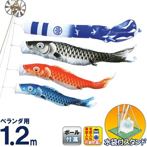 青鯉1.2m 吹流し2m 矢車(矢羽根直径)26cm ロープ6m ポール2.3m プレミアムスタンド 水袋(社)日本人...