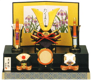 出産祝い、端午の節句に♪高さ/兜・弓矢・刀各7cm 扇3.5cm・太鼓4.5cm・陣笠3.5cm (飾り段)高さ4.5cm×横巾18cm