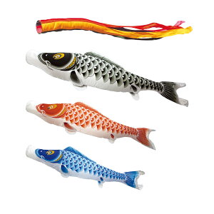 セット内容 ・五色吹き流し ・鯉3匹 ・矢車セット ・ロープセット 15m ※ポール別売。材質 ナイロン生地、アルミ金箔。家紋入。■五色吹き流し 家紋・名入れ不可。
