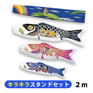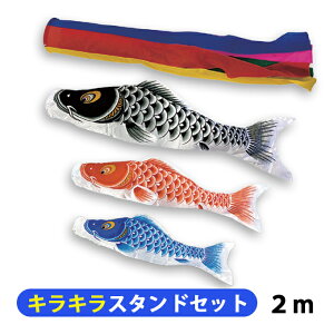 【商品構成】 2.0m / 6点セット 【セット内容】 吹き流し 鯉3匹 矢車セット キラキラ矢車 万能型スタンド ロープ付ポールセット ゴールドポール20号(2.3m) 【材質】