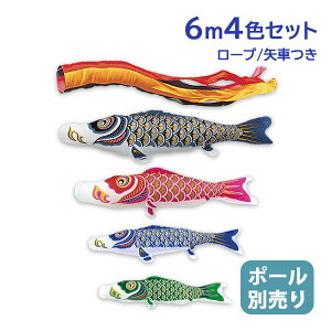 商品説明 セット内容 ・黒鯉3m ・赤鯉2m ・青鯉1.5m ・吹流し3m ・矢車50cm ・ロープ14m ・ポール6m 仕 様 ・矢車…矢羽根直径50cm ・ロープ…14m ・杭…83cm ・ポール全長6m 8本継 先端外径2.7c...